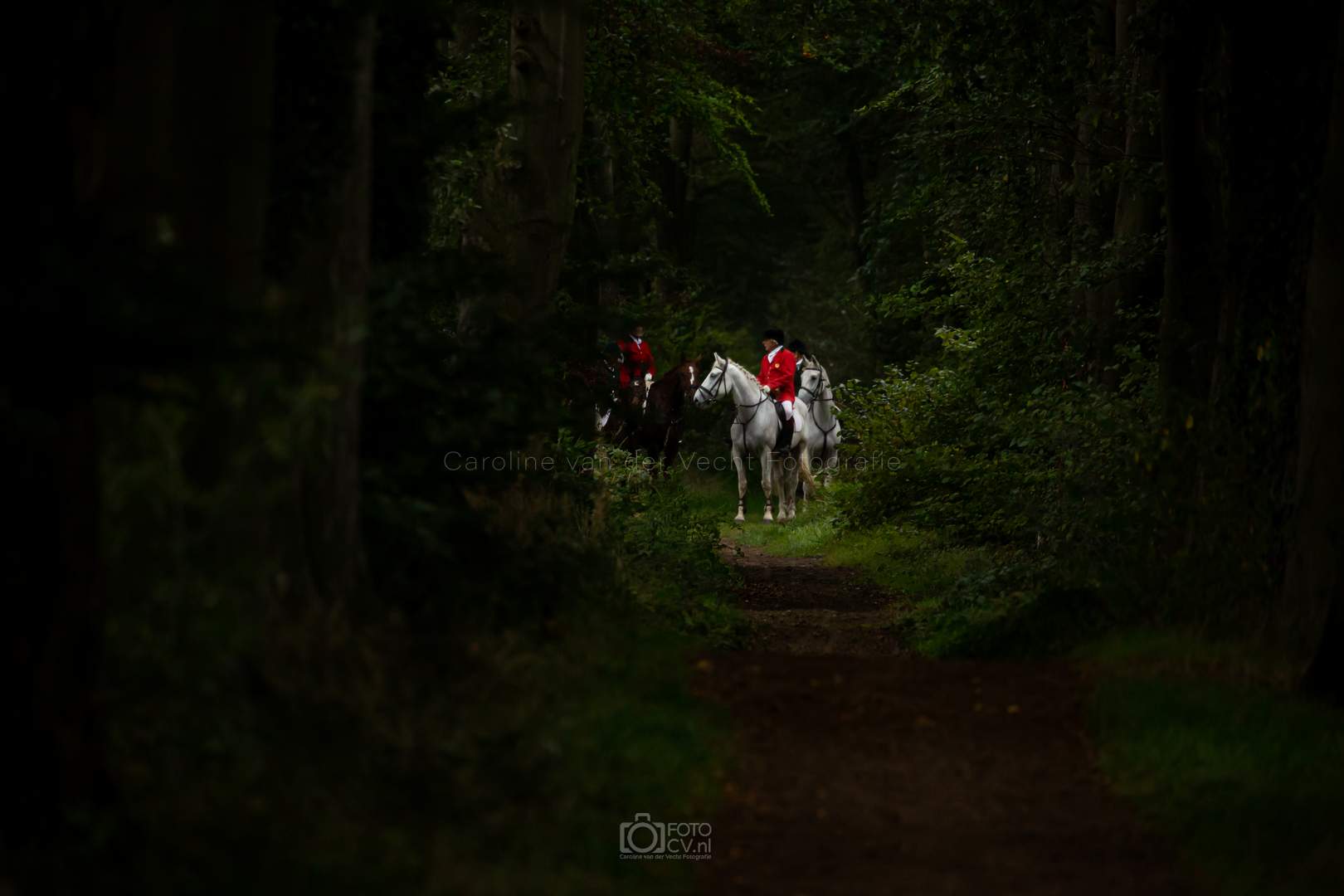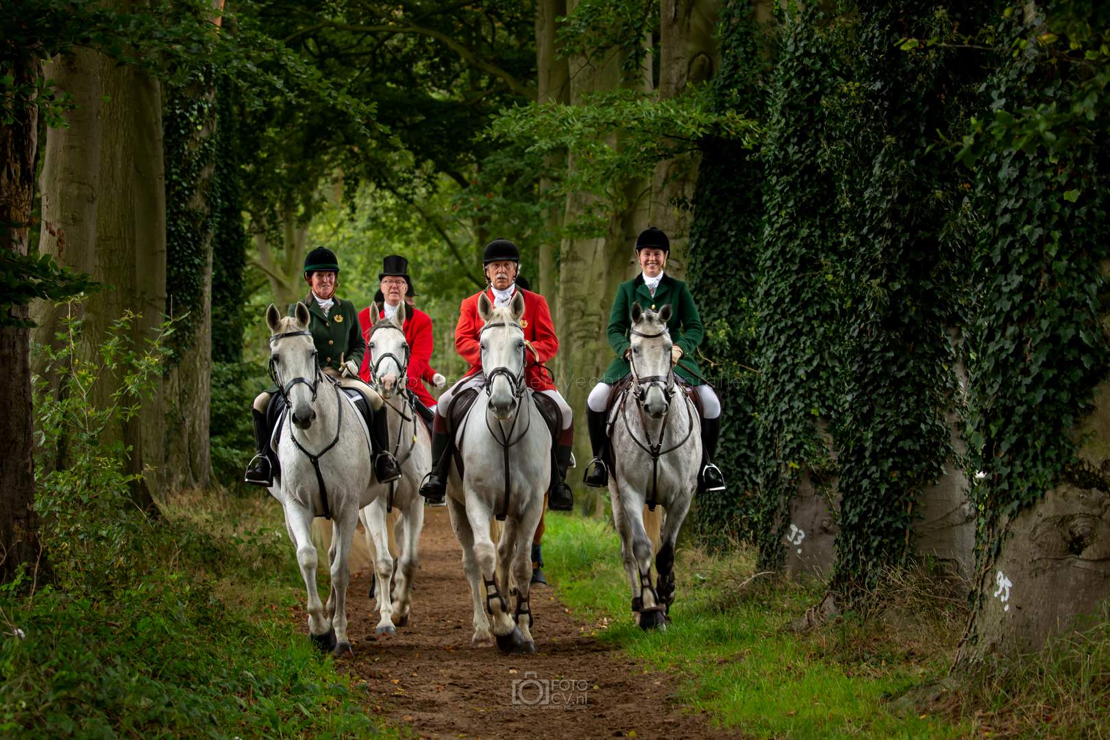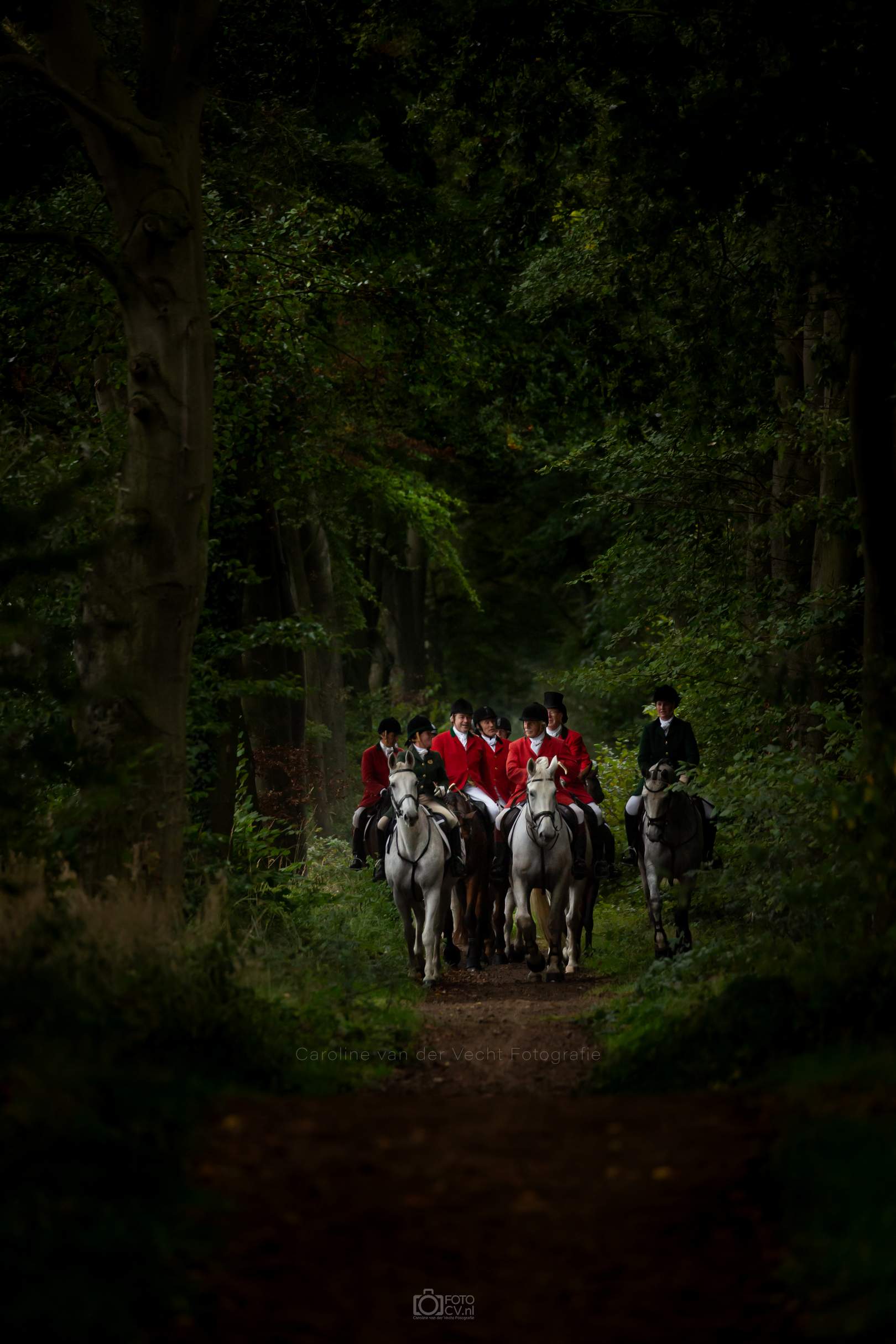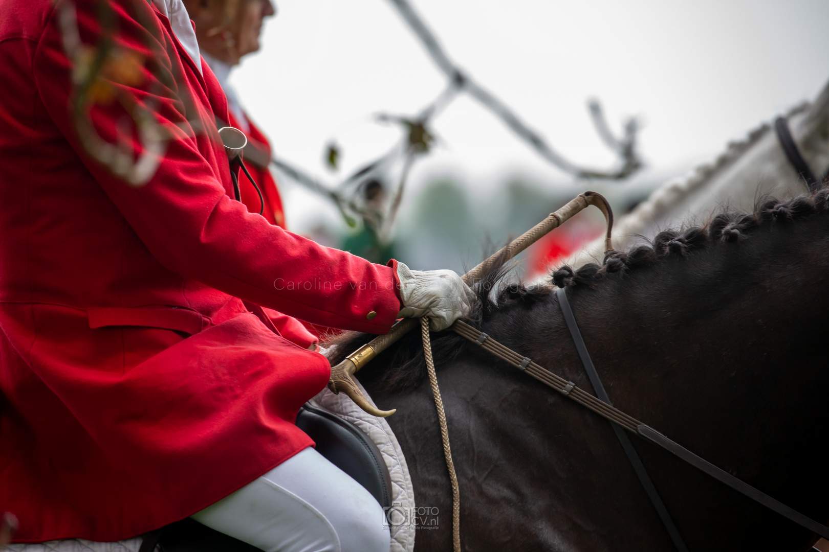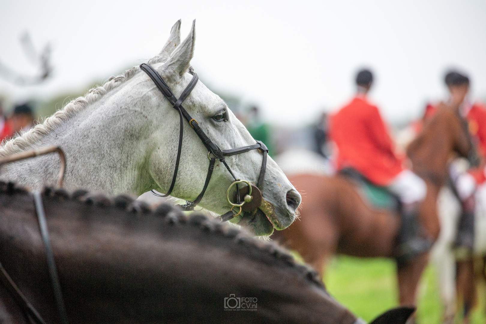 Een typische jachtdag, met miezerregen (af en toe wat harder), weiland, slootjes, boomstammen, de honden etc. Alleen zonder stirrup en zonder afterhunt. Toch wel raar zo.