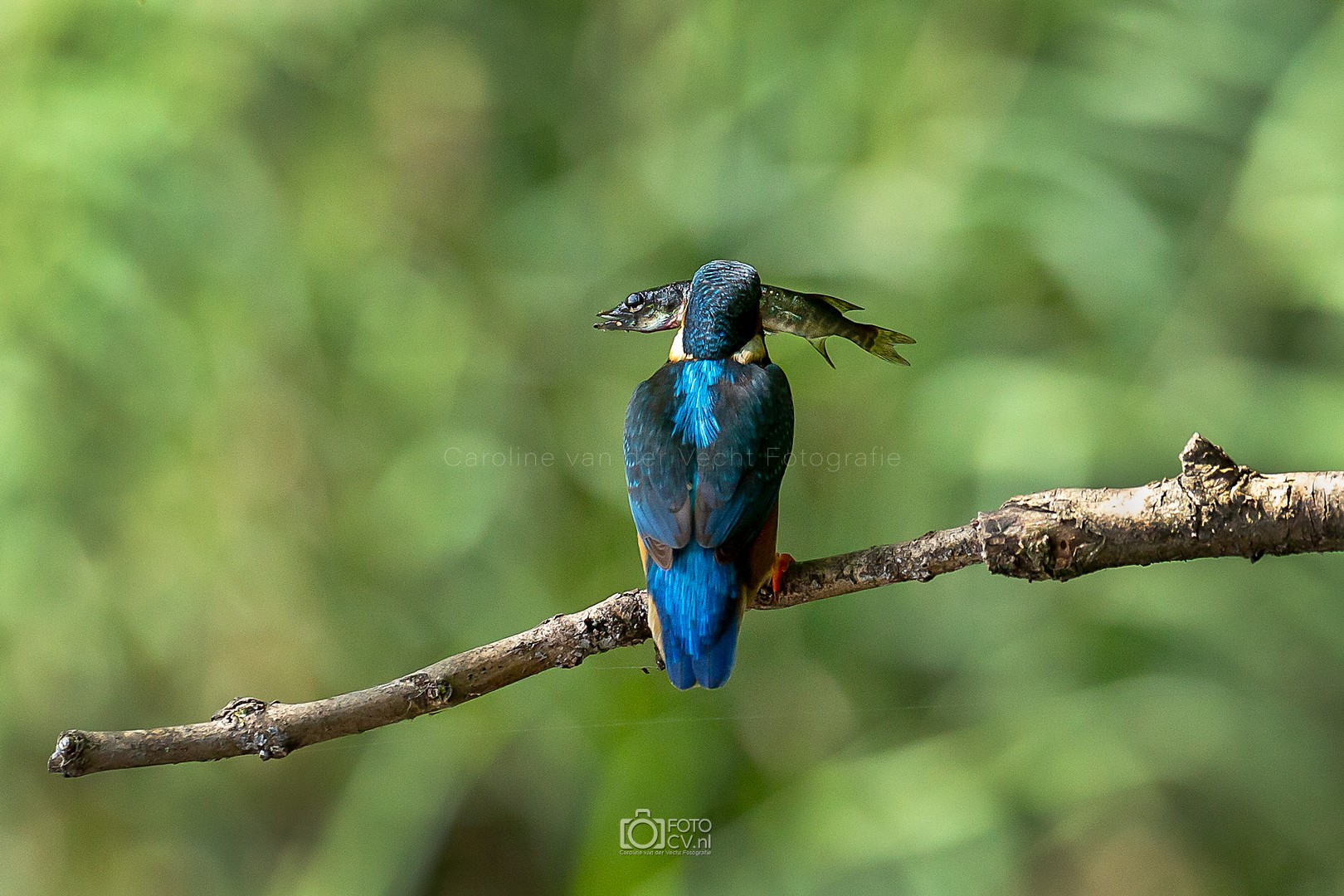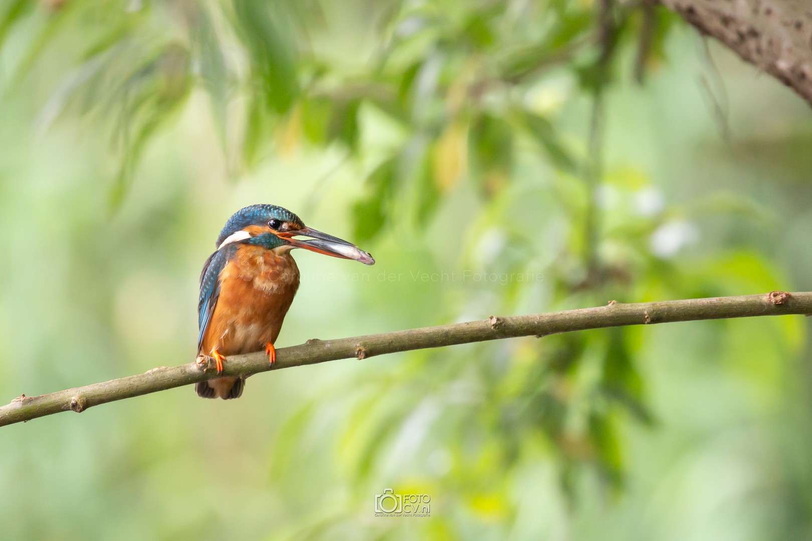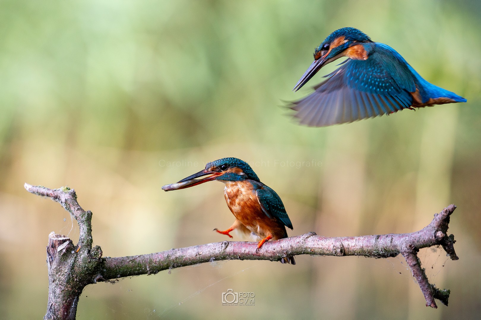 Als er een paring is geweest, dan is de kans groot dat er een paar weken later jonge ijsvogels uitvliegen. Dus nog een keertje terug naar deze mooie vogeltjes. En jawel, een van de jonkies liet zich zien. Terwijl de ouders alweer druk bezig zijn met het volgende nest…