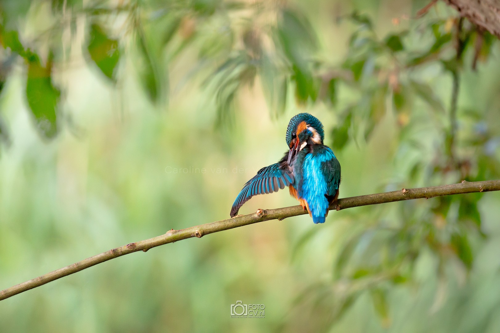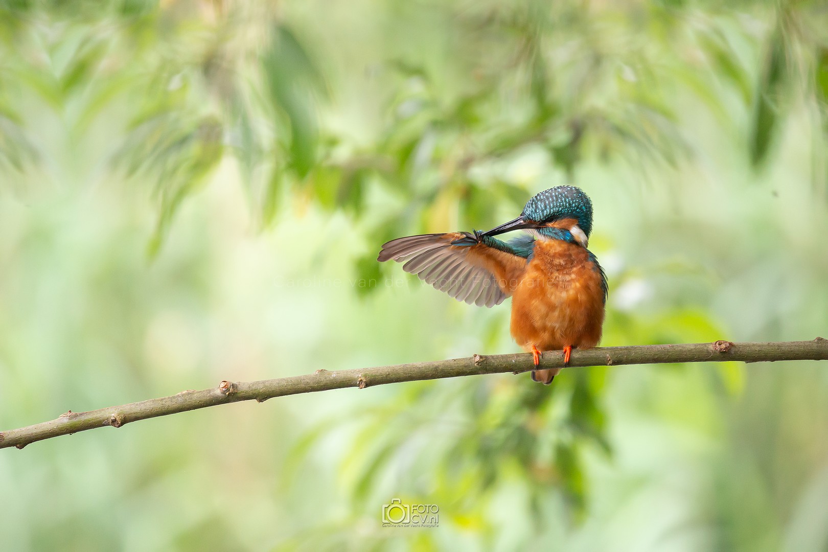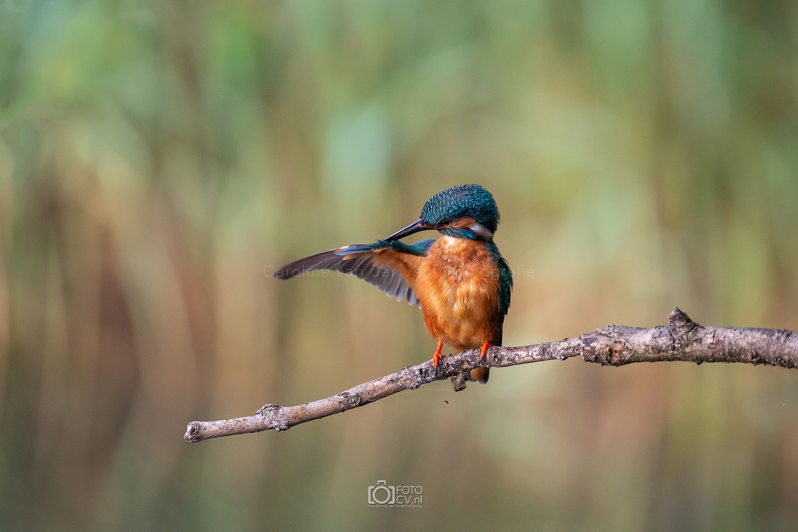 Als er een paring is geweest, dan is de kans groot dat er een paar weken later jonge ijsvogels uitvliegen. Dus nog een keertje terug naar deze mooie vogeltjes. En jawel, een van de jonkies liet zich zien. Terwijl de ouders alweer druk bezig zijn met het volgende nest…