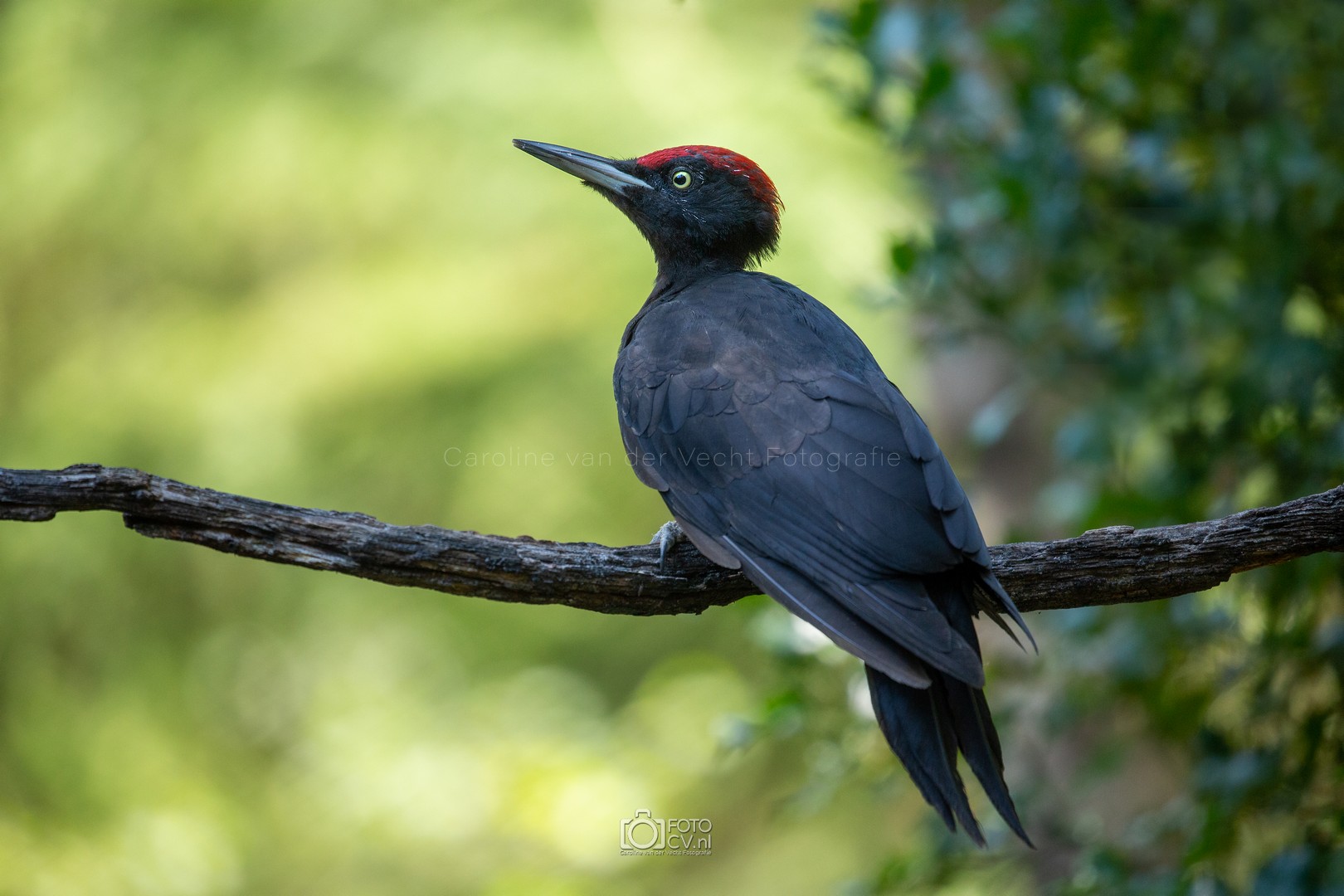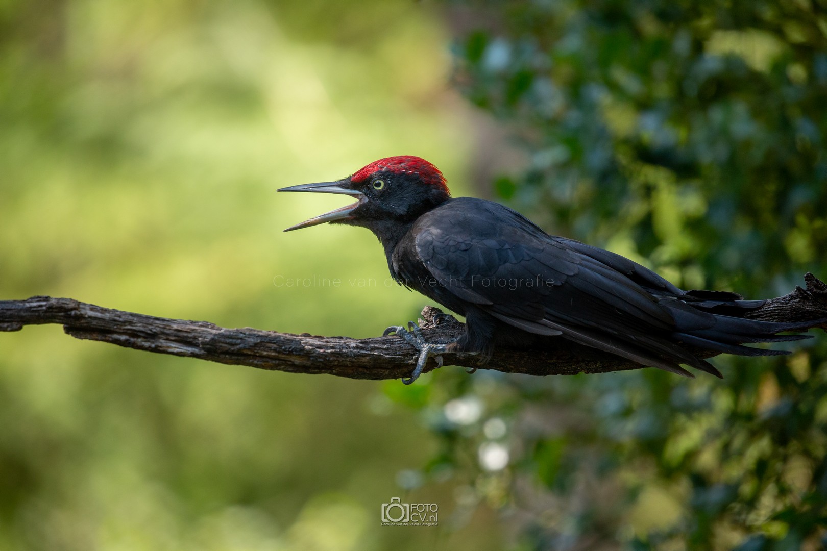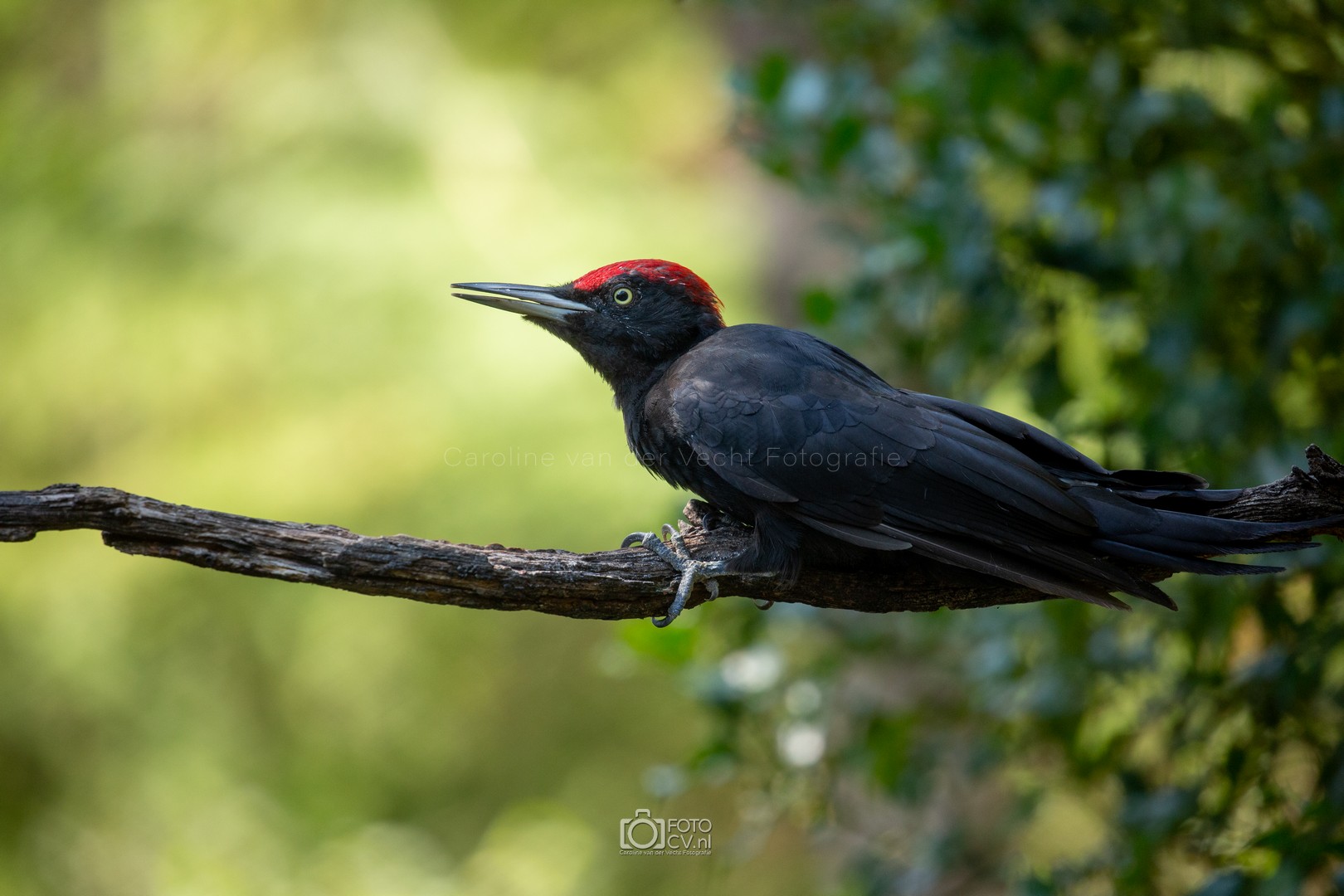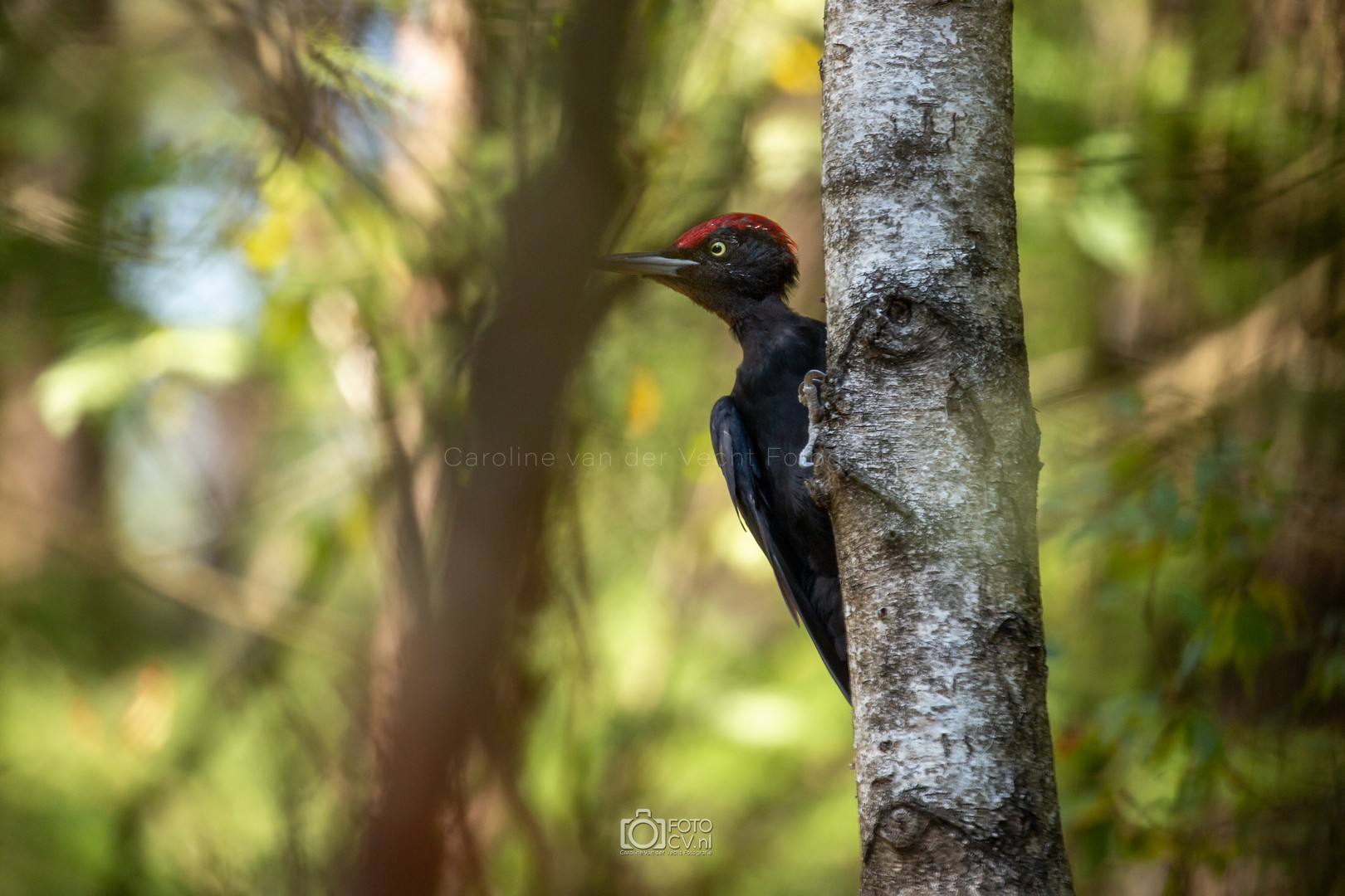 Zwart! Op deze tropische dag zaten we in een gelukkig koele hut te kijken hoe verschillende vogels even iets kwamen drinken. Toen we opeens iets groots en zwarts voorbij zagen vliegen. Wat was dat? Maar na zijn kenmerkende geluid, wisten we het zeker: de zwarte specht! Natuurlijk ook blij met het bezoek van de sperwer 🙂