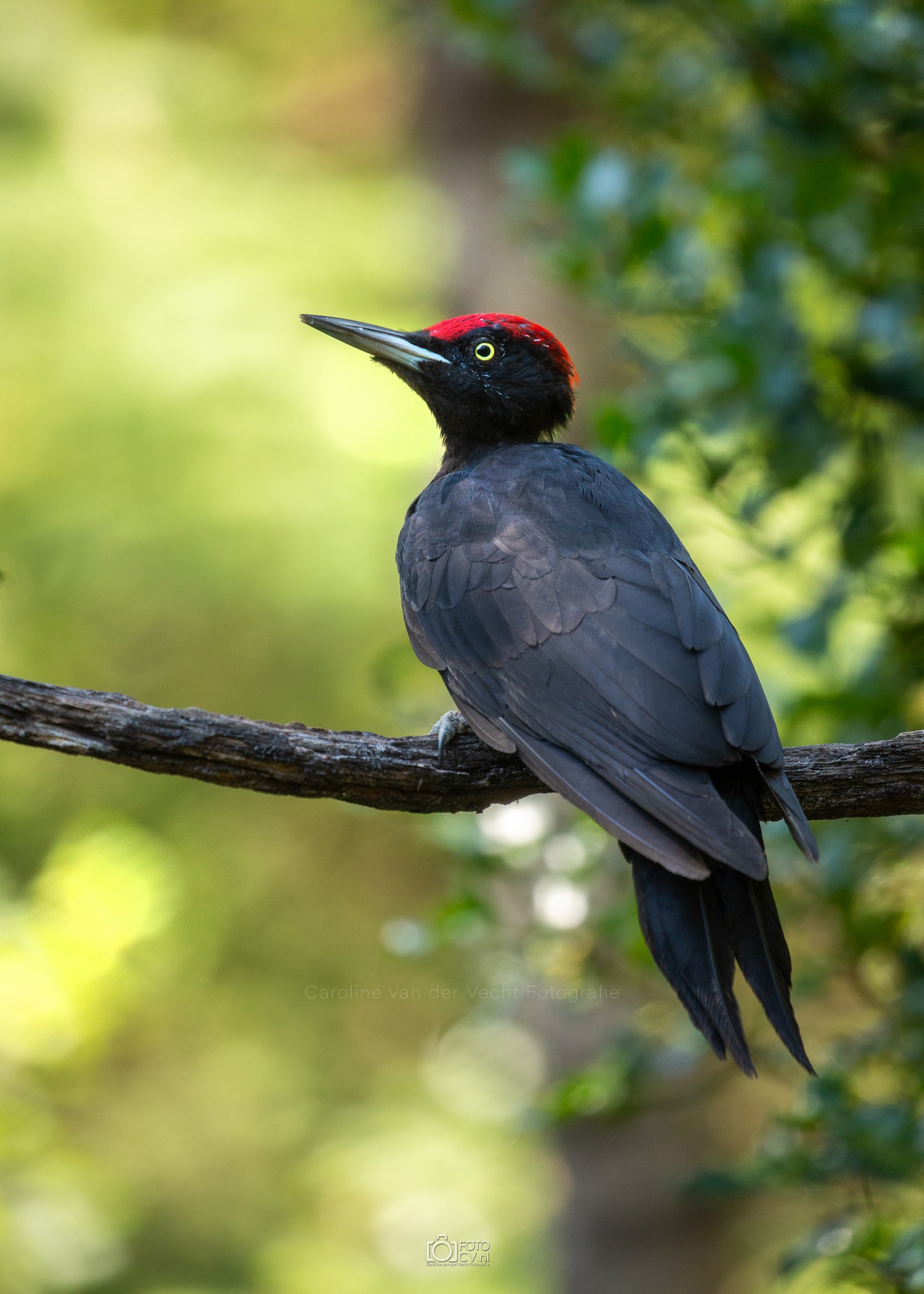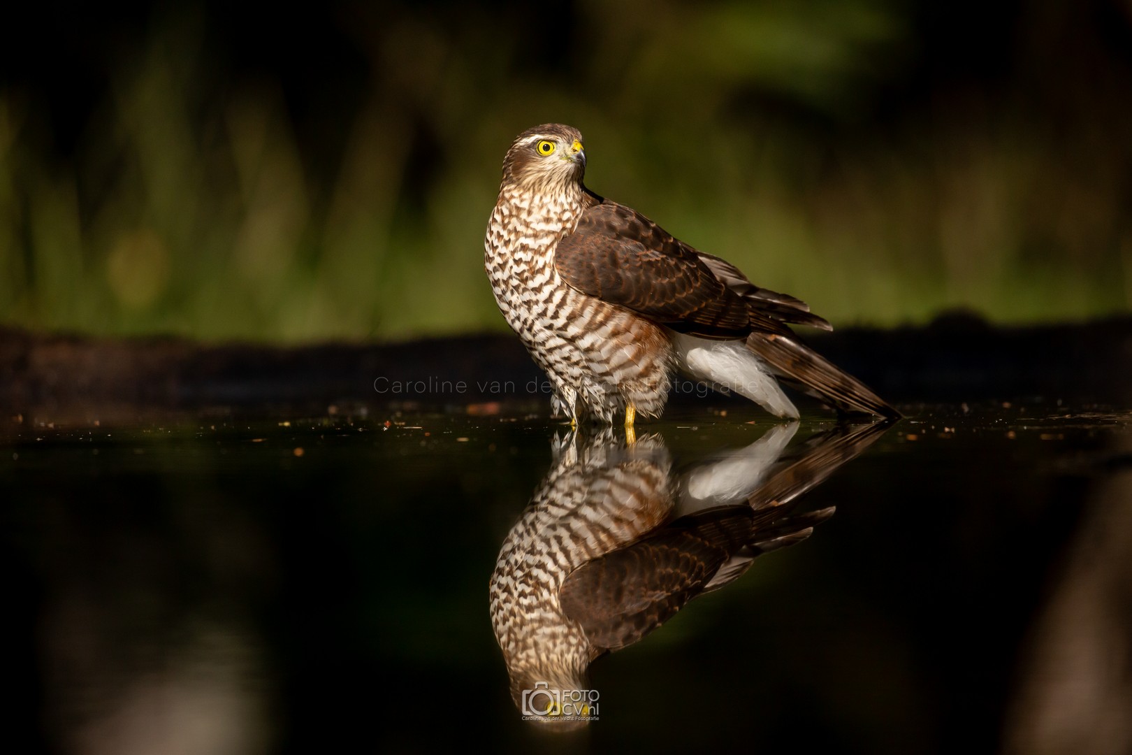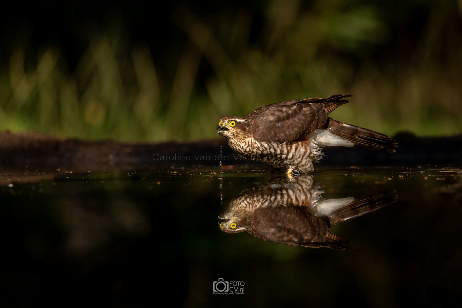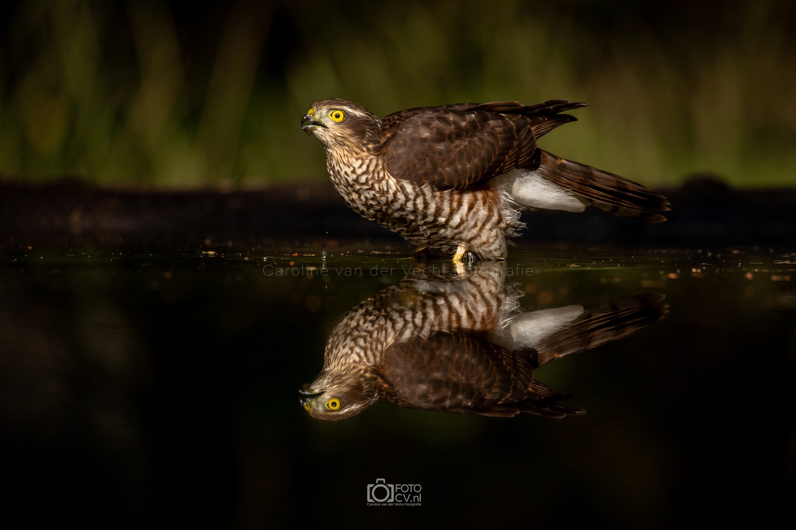 Zwart! Op deze tropische dag zaten we in een gelukkig koele hut te kijken hoe verschillende vogels even iets kwamen drinken. Toen we opeens iets groots en zwarts voorbij zagen vliegen. Wat was dat? Maar na zijn kenmerkende geluid, wisten we het zeker: de zwarte specht! Natuurlijk ook blij met het bezoek van de sperwer 🙂