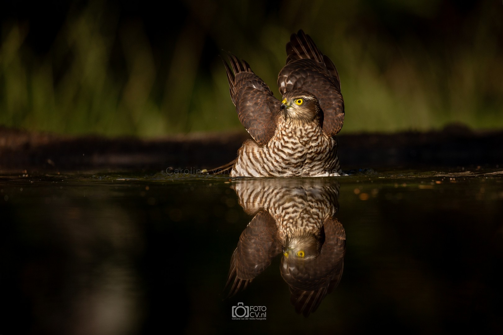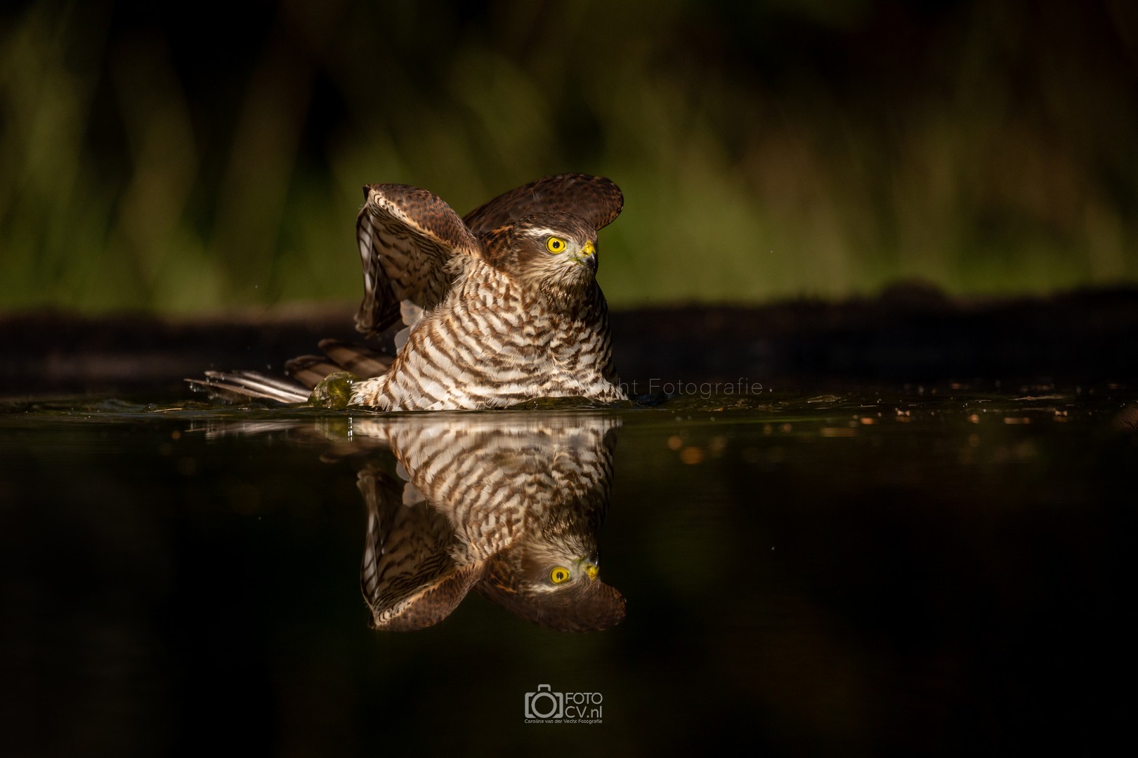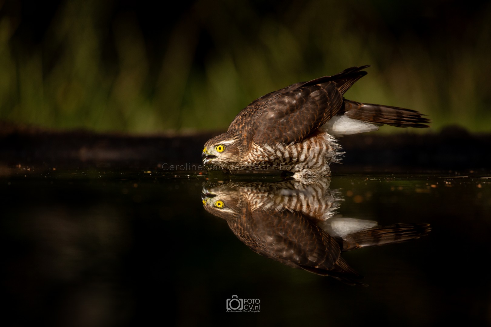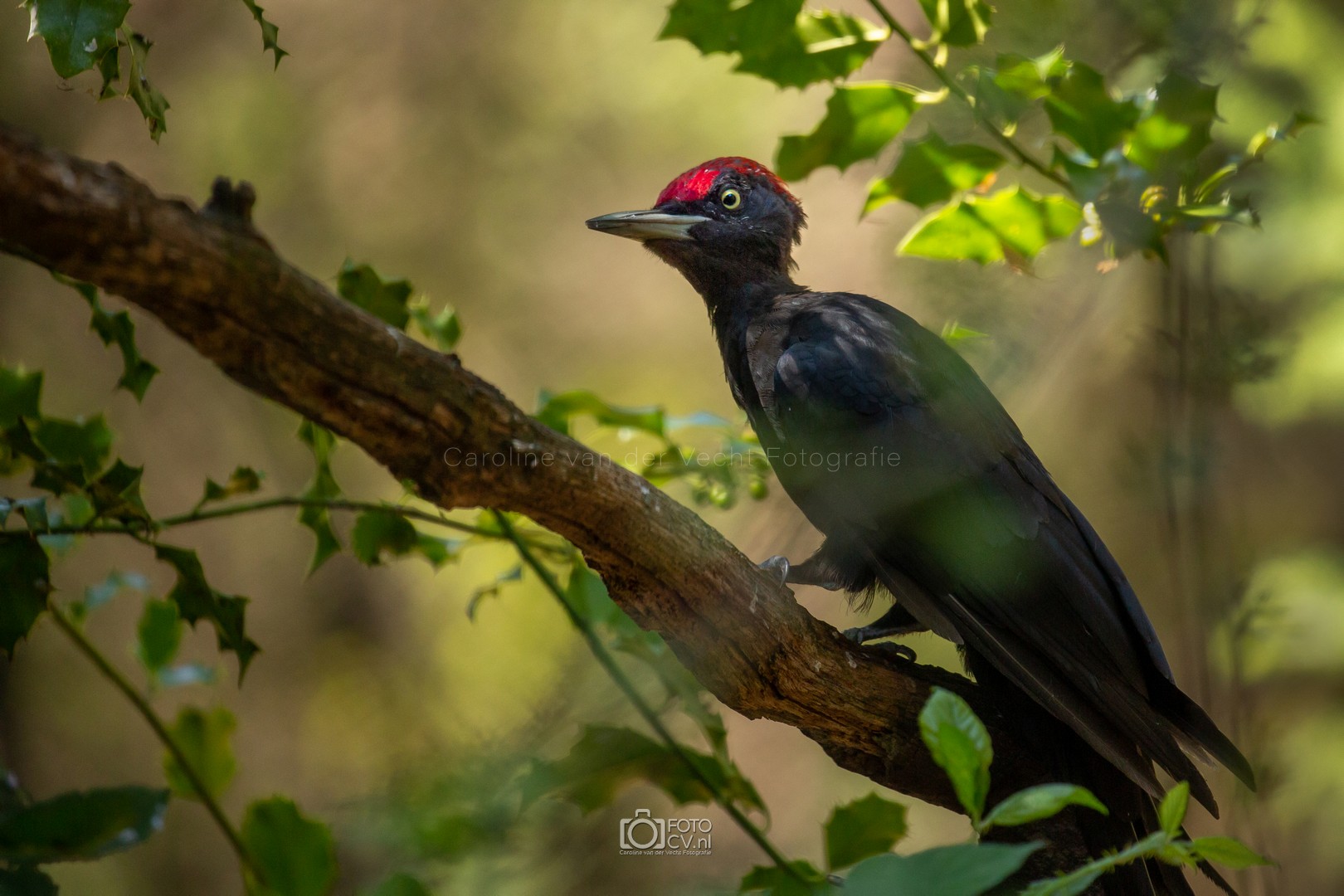 Zwart! Op deze tropische dag zaten we in een gelukkig koele hut te kijken hoe verschillende vogels even iets kwamen drinken. Toen we opeens iets groots en zwarts voorbij zagen vliegen. Wat was dat? Maar na zijn kenmerkende geluid, wisten we het zeker: de zwarte specht! Natuurlijk ook blij met het bezoek van de sperwer 🙂